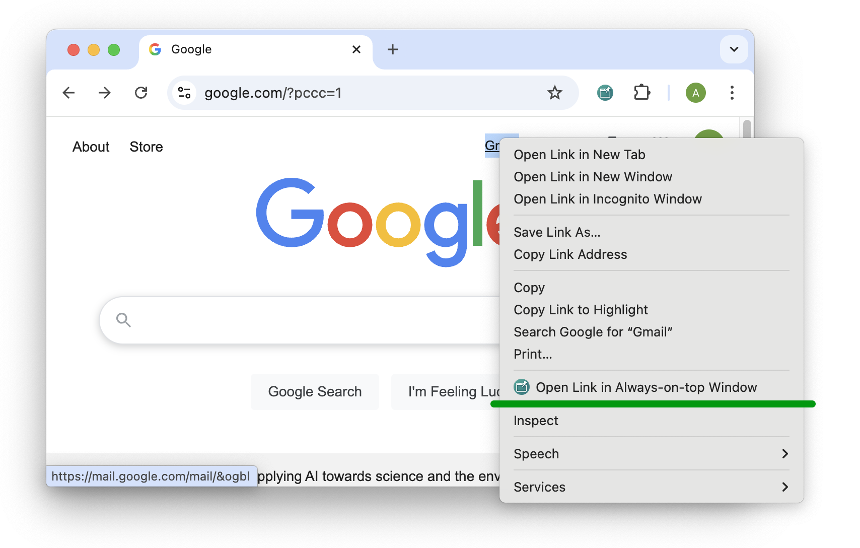 Or right-click on any link and select "Open link in Always-on-Top Window":